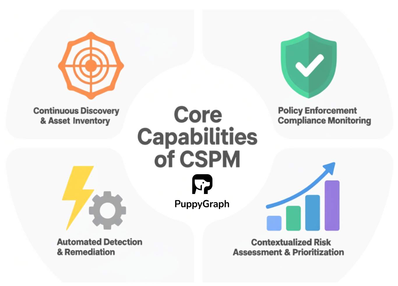 Modern CSPM transforms this reactive model into proactive security through three capabilities: