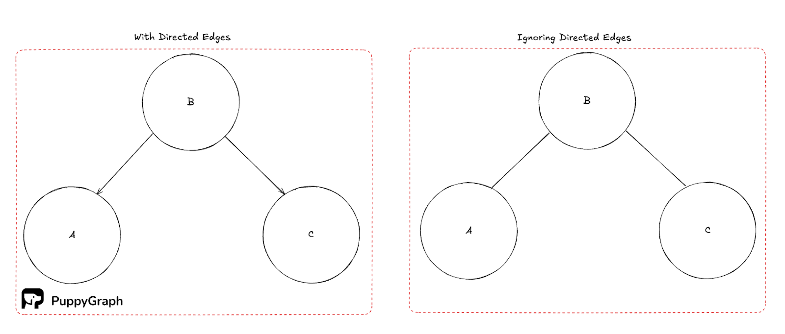Note that in the figure above, there is no path to Node B unless you ignore the direction of the edges.