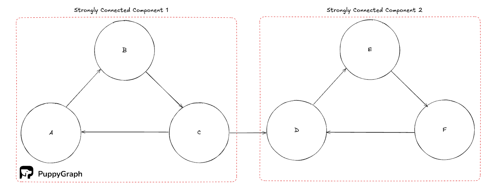 A strongly connected component is a maximal set of vertices in a directed graph where every vertex can reach every other vertex in both directions. While trivial SCCs are just isolated nodes, non-trivial SCCs help to capture tight cyclical structure like feedback loops and mutually dependent services. They partition the graph, and you can find them in linear time with Tarjan’s or Kosaraju’s algorithm, which most libraries expose out of the box.