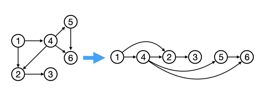 Another important application is topological sorting, which orders the vertices of a directed acyclic graph according to dependency relationships. DFS makes it possible to compute this ordering efficiently.