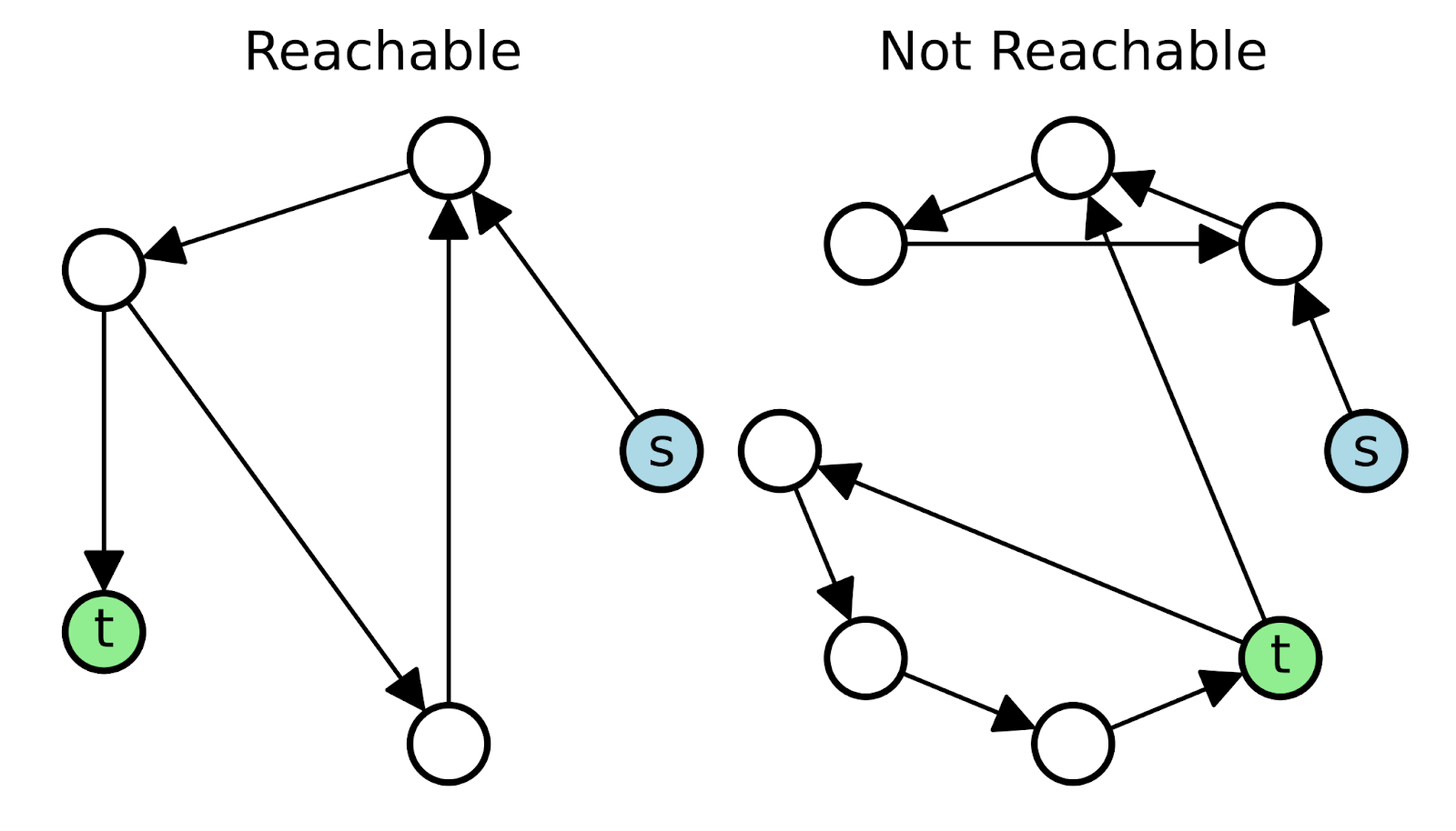 Formally, given a graph \( G = (V, E) \), where \( V \) is the set of vertices and \( E \) is the set of edges, node \( v \) is reachable from node \( u \) if there exists a path \( u \rightarrow v \). The length of the path and the specific edges used are irrelevant to basic reachability; only the existence of a path matters. This makes reachability distinct from optimization problems such as shortest path, which consider distance, cost, or other metrics.