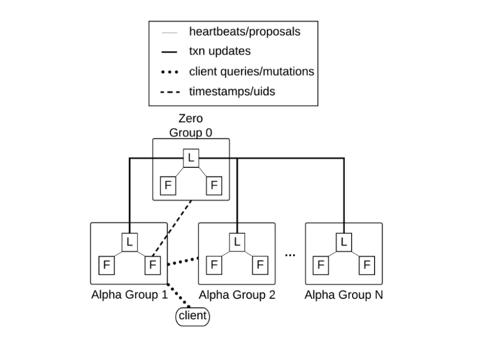- Dgraph Alpha (data-serving nodes): Stores and serves graph data, and handles queries and mutations.