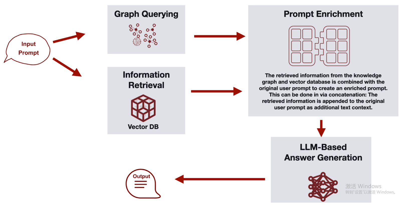 GraphRAG extends RAG beyond representation learning into explicit relational reasoning by making the knowledge graph the core retrieval and context modeling layer. When a user submits a natural language query, the system first analyzes what information is required to answer it and translates that need into a structured graph query. This query runs against the underlying knowledge graph to retrieve relevant subgraphs, entities, relationships, and any necessary aggregation results. Instead of pulling isolated text fragments, GraphRAG assembles a connected, structured view of the data that reflects how concepts relate to one another.